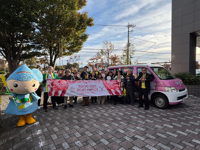 東京2025デフリンピックの開催に向けて、全国を巡回している 「デフリンピックキャラバンカー」が11月4日に東久留米市役所本庁舎にやってきました!