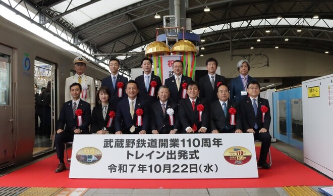「武蔵野鉄道開業110周年トレイン」は、西武鉄道の前身である武蔵野鉄道の開業110周年を記念し、地域とともに歩んできた歴史を振り返るとともに、沿線10自治体と西武鉄道を結ぶ「絆」を象徴する特別電車です。先頭車両の前面に掲出された記念ヘッドマークのデザインは、今年7月に公募された65作品の中から選ばれました。