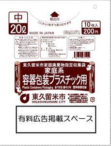 | 容器包装プラスチック用 中(20リットル) | 白地に茶色 | 縦50mm・横130mm |